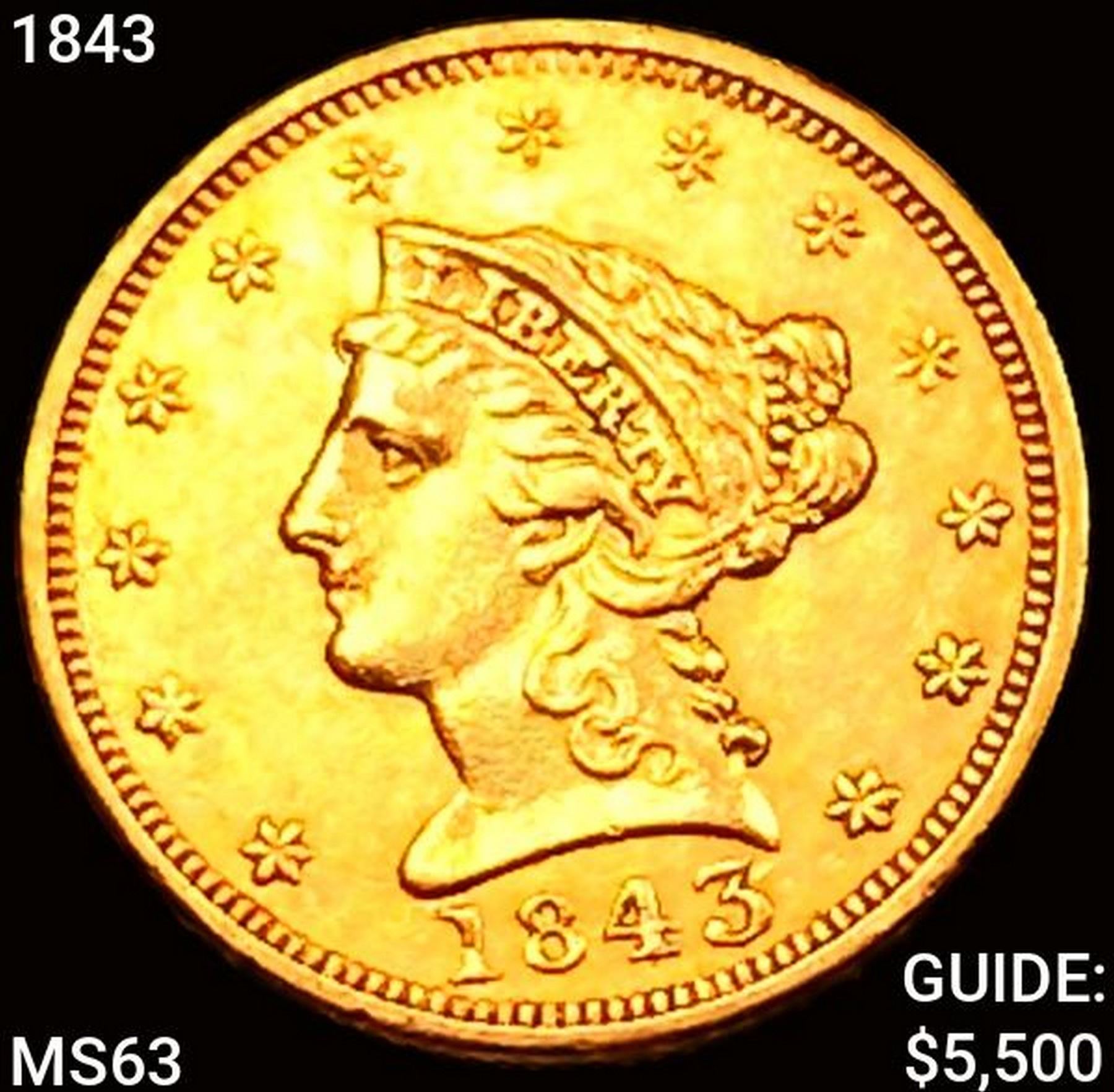 1843 $2.50 Gold Quarter Eagle CHOICE BU