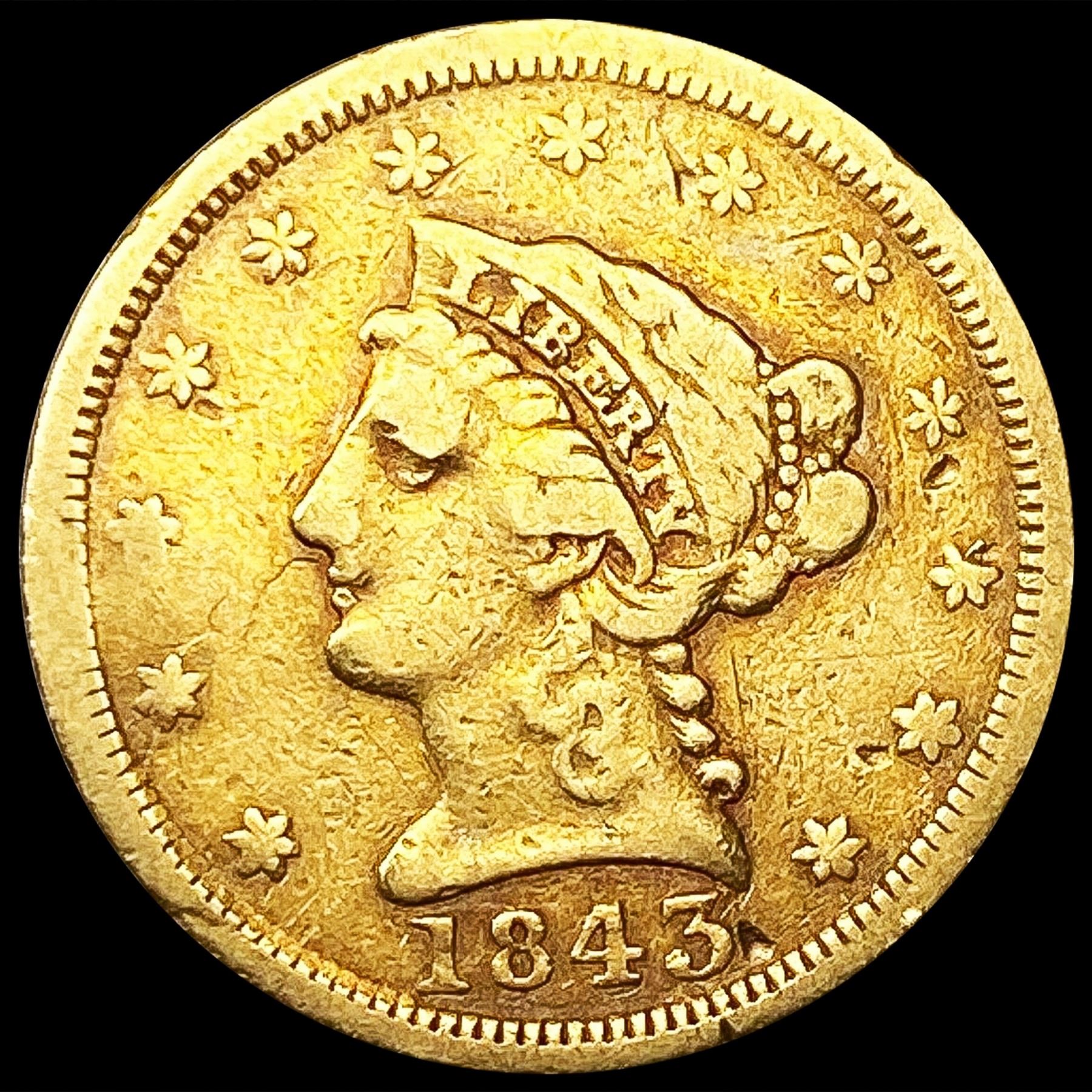 1843 $2.50 Gold Quarter Eagle NICELY CIRCULATED