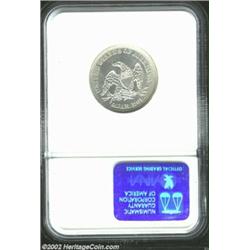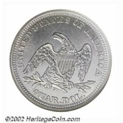1843 25C MS65 NGC. While the 1843 is not one of the more highly respected issues in the Seated Quarter series, it is, nevertheless, conditionally scarce in Uncirculated grades. This is a bright and lustrous coin that is brilliant throughout except for a dash of light hazy gray patina in the center of the obverse. Fully struck in all areas, there are very light roller marks on the obverse and a couple of tiny reeding marks in the lower right obverse field--these being the only mentionable imperfections on this Gem. Population: 2 in 65, 0 finer (7/02). Important notice: We expect to be auctioning lots at the rate of 200-250 per hour. Sometimes eBay Premier live bid software cannot keep up with that pace, so we strongly recommend that you place a realistic proxy bid now as insurance to avoid disappointment. Also please note that all Heritage/CAA lots purchased through eBay Premier carry a 20% Buyer's Premium. Please make sure you read the Terms and Conditions.