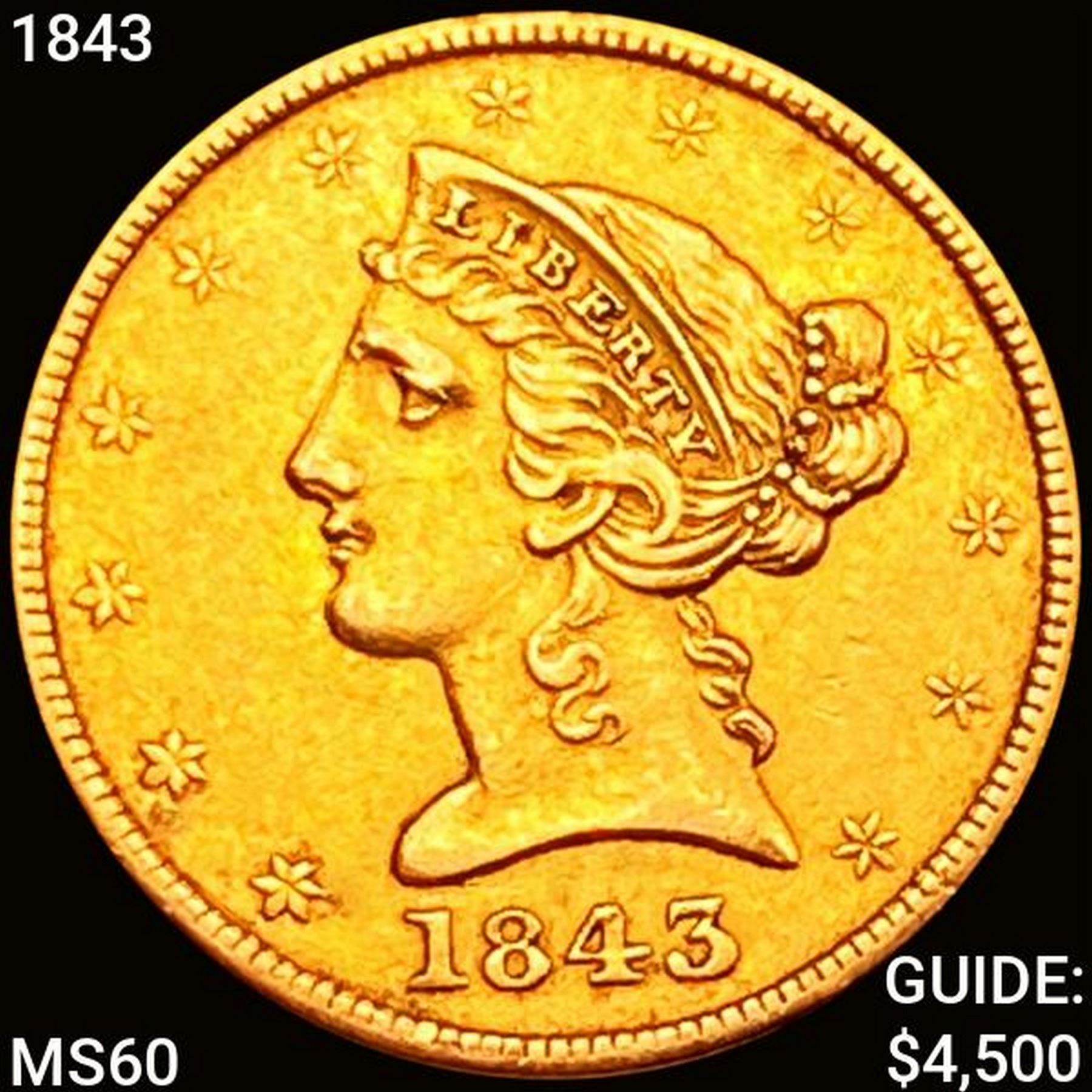 1843 $5 Gold Half Eagle UNCIRCULATED