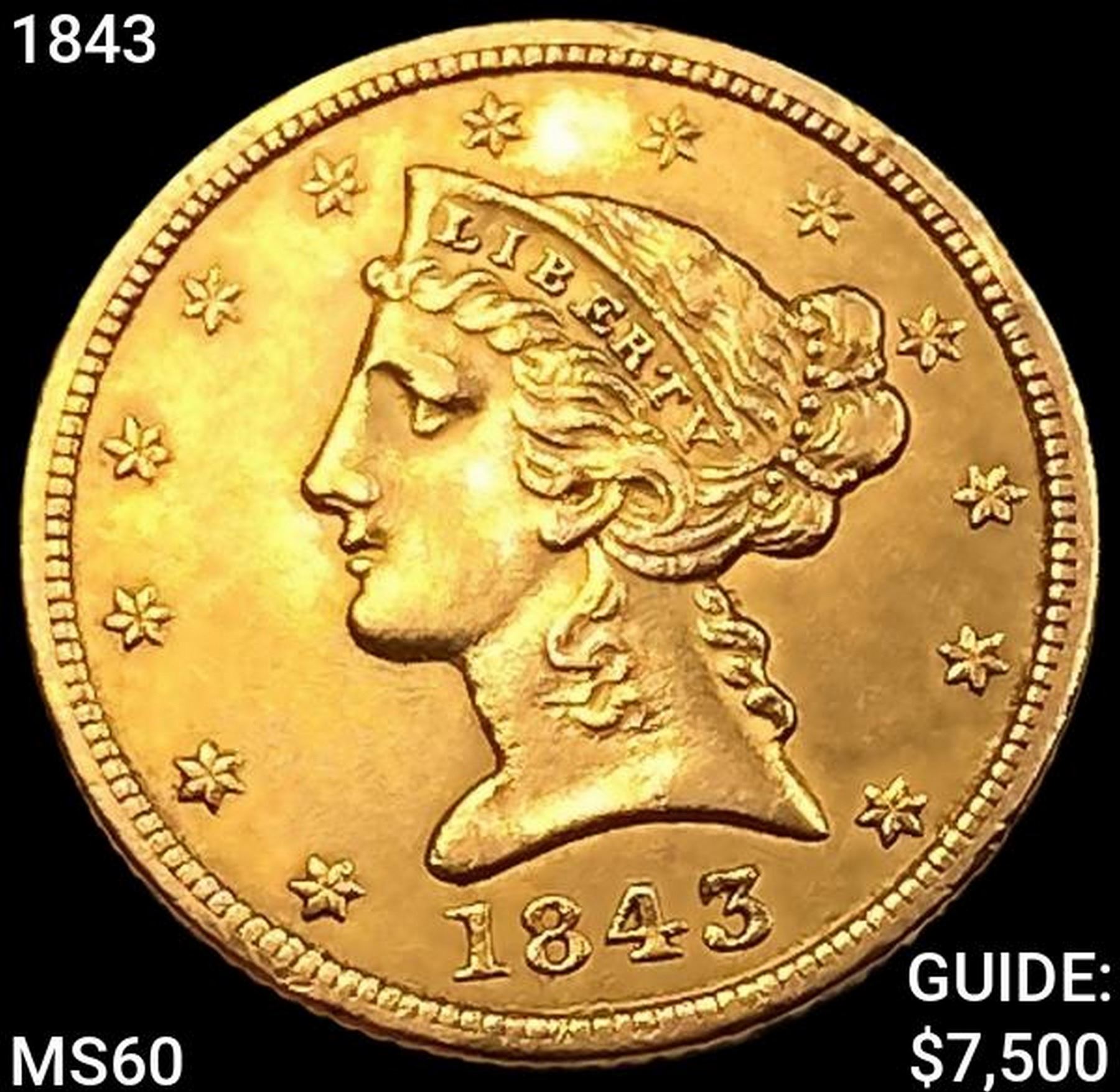 1843 $5 Gold Half Eagle UNCIRCULATED