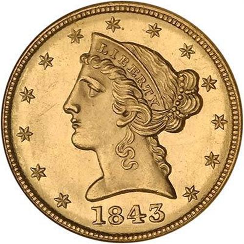Satiny golden surfaces display a high degree of luster. Choice for the grade, and nicely struck as well. A splendid example of the No Motto Liberty $5 from this period.