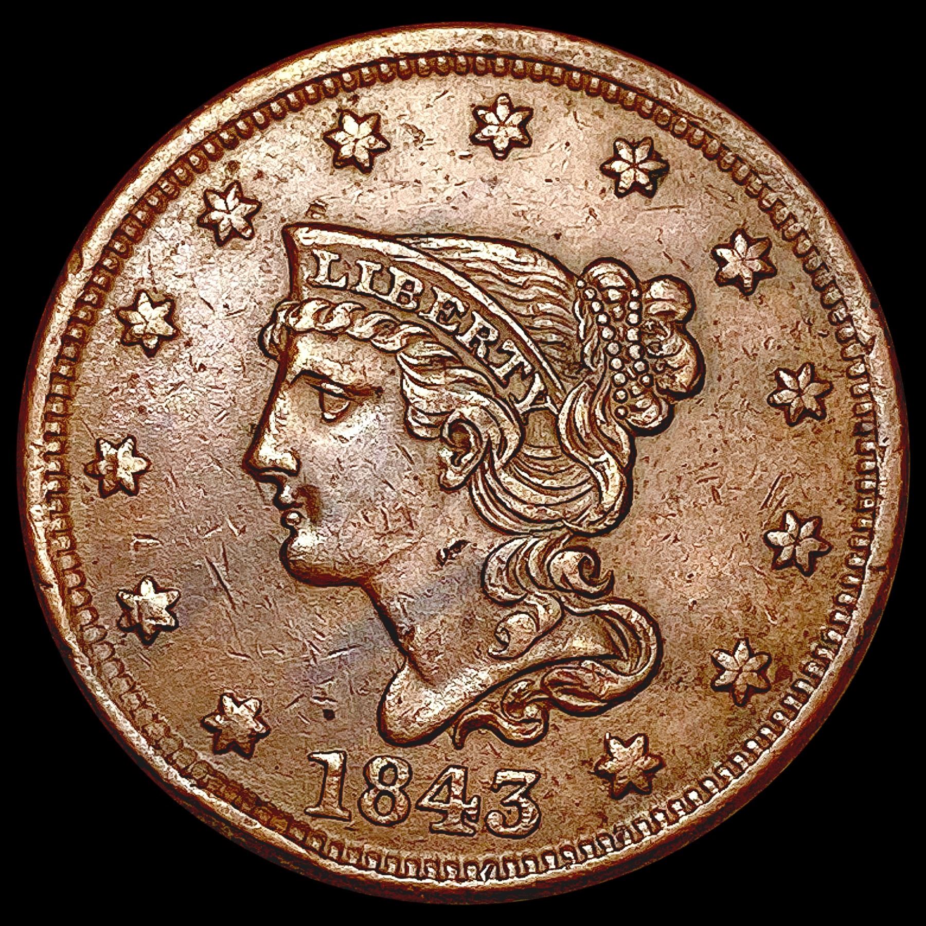 1843 Braided Hair Large Cent CLOSELY UNCIRCULATED