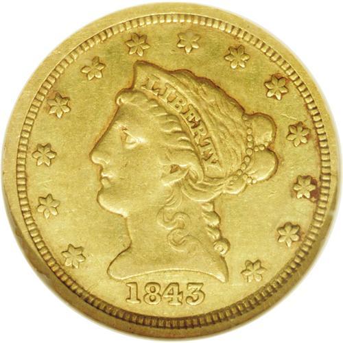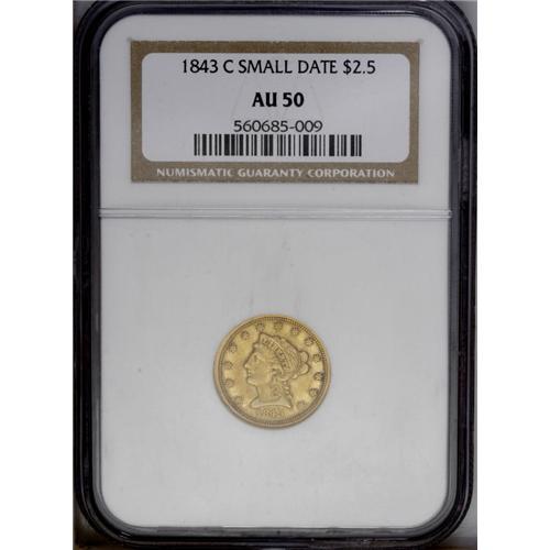1843-C $2 1/2 Small Date, Crosslet 4 AU50 NGC. Variety 1843-C[$2 1/2] Small Date, Crosslet 4 AU50 NG