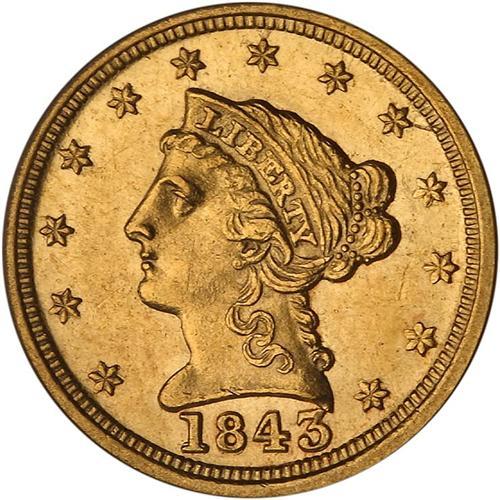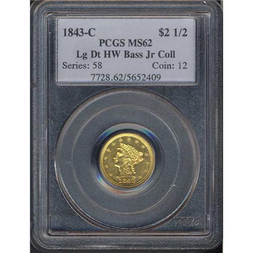 1843-C $2.50 Liberty. Lg Date, Plain 4 PCGS MS62
