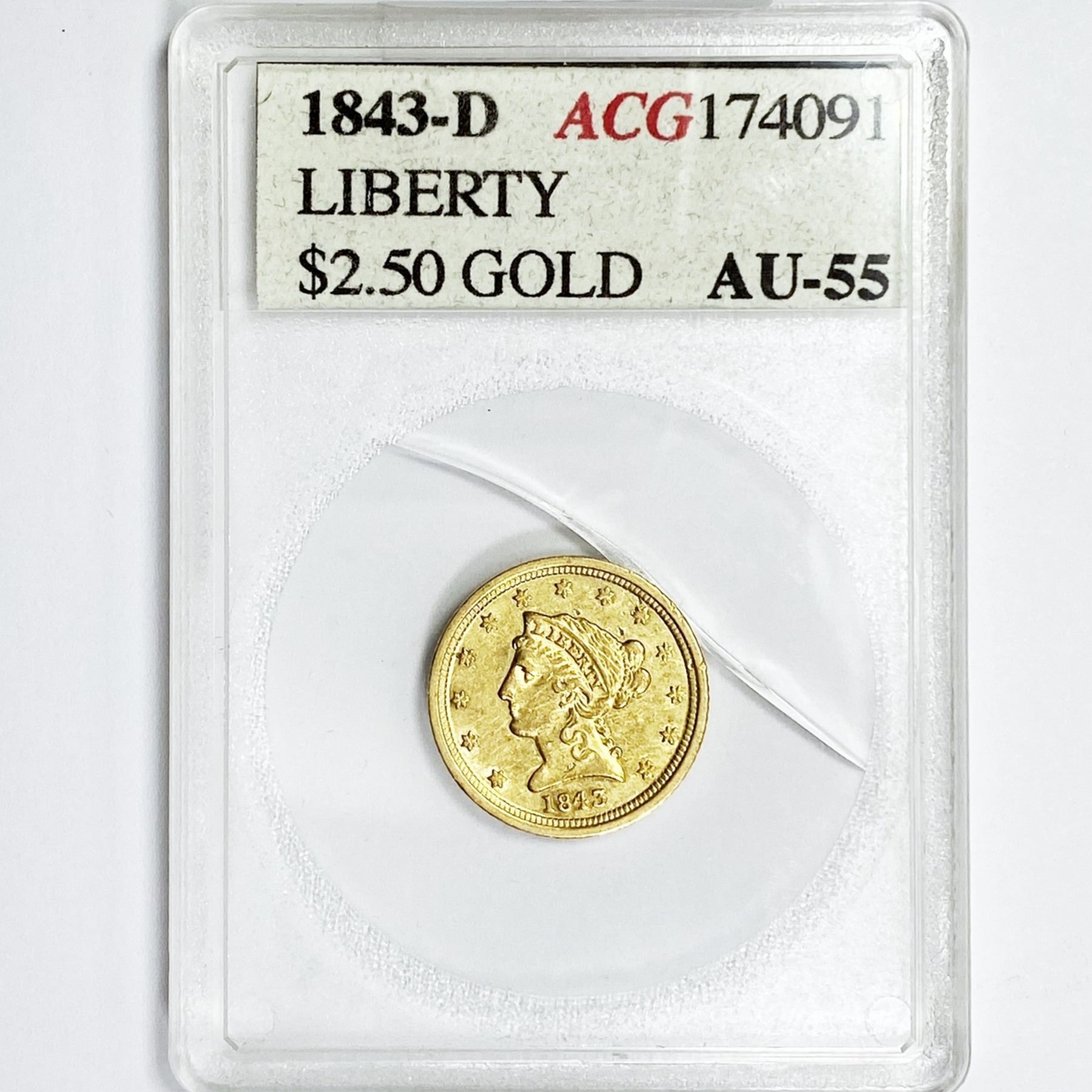 1843-D $2.50 Gold Quarter Eagle ACG-AU55