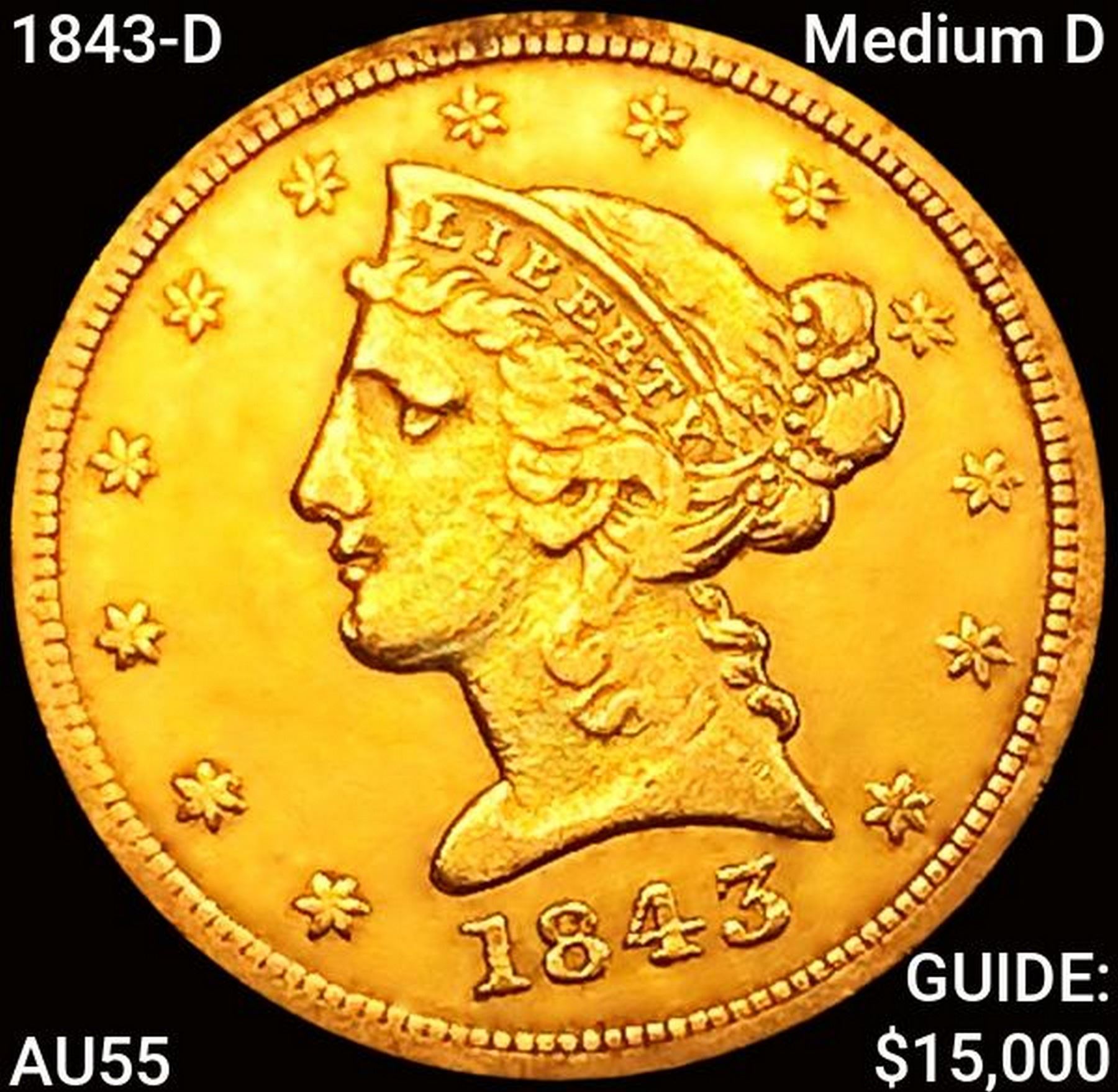 1843-D Medium D $5 Gold Half Eagle HIGH GRADE