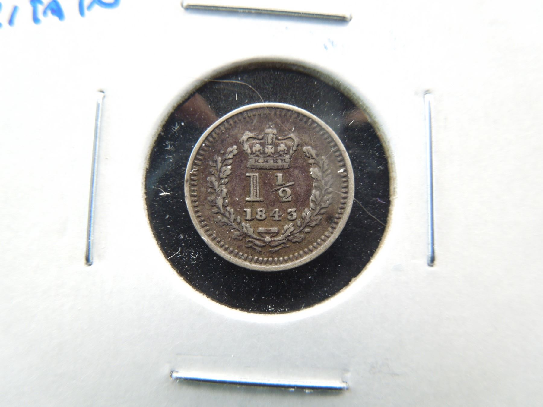 1843 Great Britain Silver 1 1/2 Pence. Scarce. Nice.