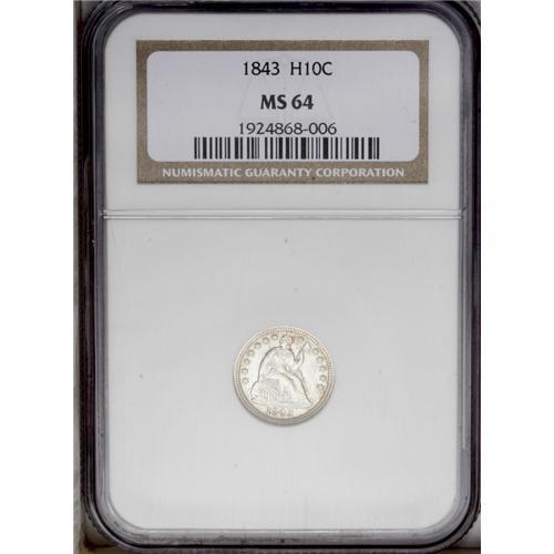 1843 H10C MS64 NGC. A shimmering near-Gem with bright, 1843[H10C] MS64 NGC.
