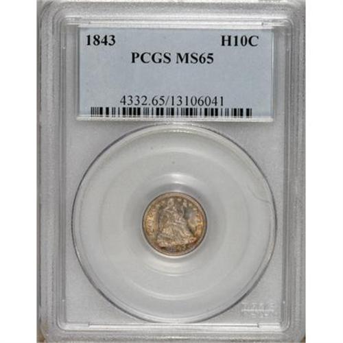 <B>1843 H10C MS65 PCGS.</B></I> Cream-gray and golden-brown toning drapes this lustrous and intricately struck Gem. The obverse is remarkably close to pristine, while the reverse has only a couple of wispy grazes near the denomination. Population: 9 in 65, 9 finer (4/07).<BR><BR><b>Shipping:</b> Coins & Currency (<a target="_blank" href="http://www.heritageauctions.com/common/shipping.php">view shipping information</a>)