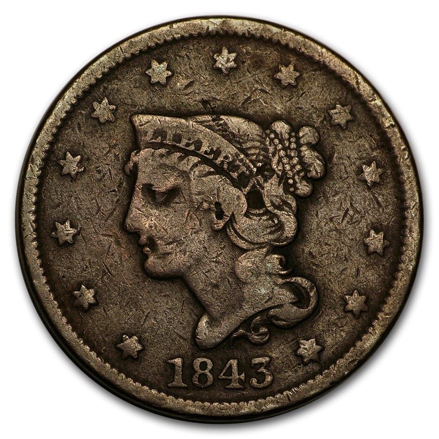 1843 Large Cent Petite Head, Sm Letters Fine