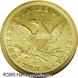 <B>1843-O $10 AU53 NGC.</B></I> This originally preserved, yellow-gold example is well struck for the issue with light, even wear throughout. The number of abrasions is consistent with the assigned grade, and none are worthy of individual mention. A tiny rim bump at 5 o'clock on the obverse is noted solely for accuracy. The 1843-O (175,162 pieces produced) is among the more common O-mint Eagles, but survivors in the finer circulated grades are difficult to locate. Lot:8726
