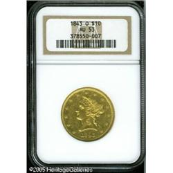 1843-O $10 AU53 NGC. This originally preserved, ye