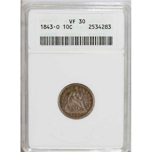 1843-O 10C VF30 ANACS. NGC Census: (9/17). PCGS Po
