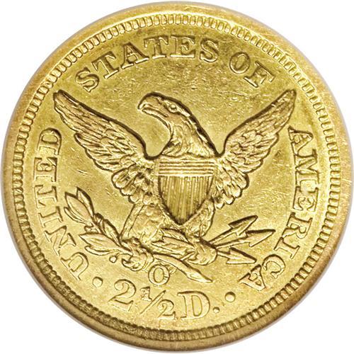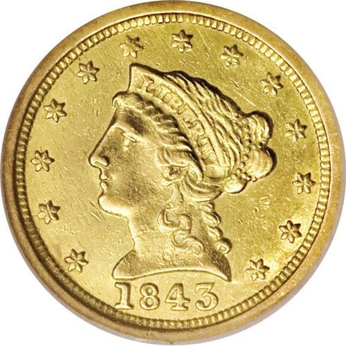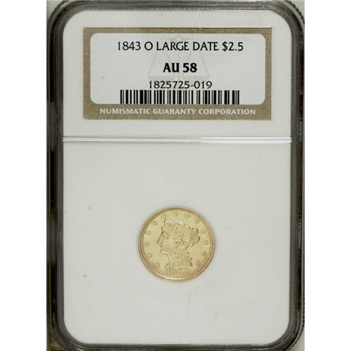 1843-O $2 1/2 Large Date, Plain 4 AU58 NGC. The 1 in t