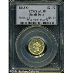 1843-O $2 1/2 Small Date, Crosslet 4 AU58 PCGS. Th 1843-O $2 1/2 Small Date, Crosslet 4 AU58 PCGS.