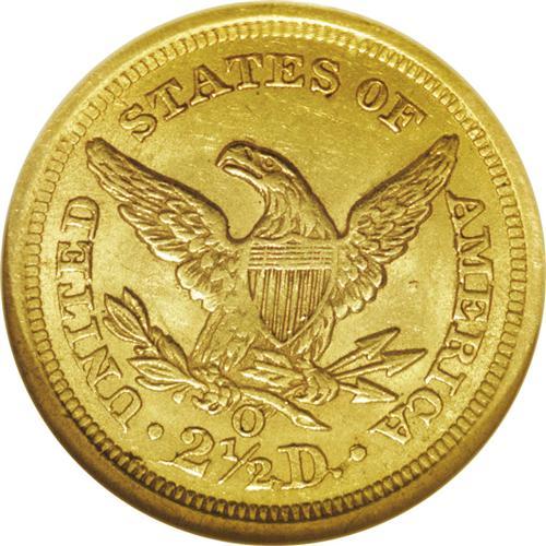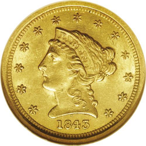 1843-O $2 1/2 Small Date, Crosslet 4 MS63 NGC. In 1843