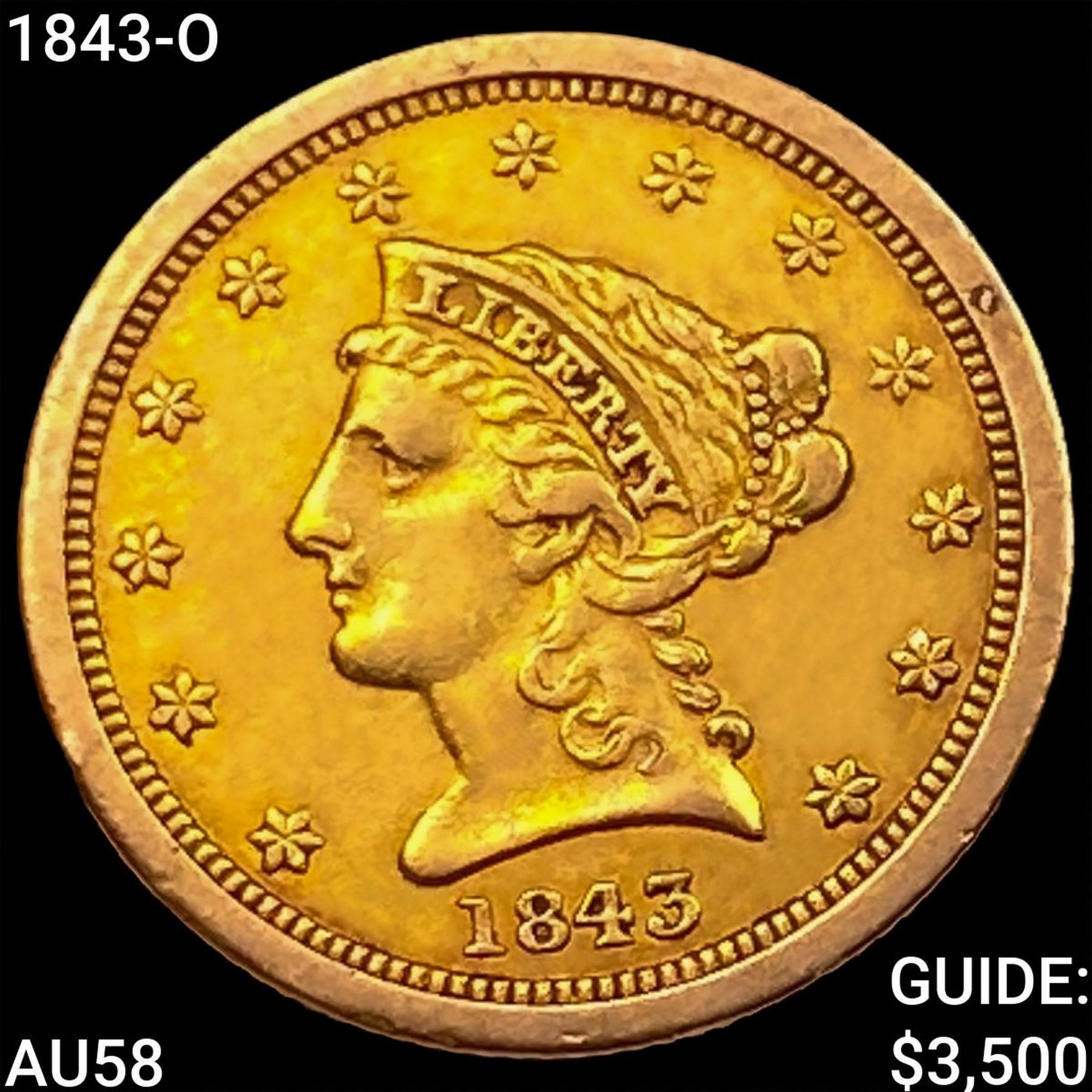 1843-O $2.50 Gold Quarter Eagle CHOICE AU