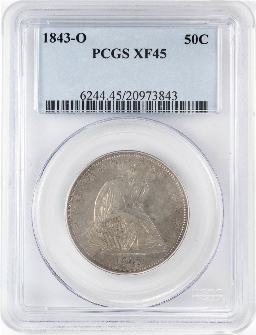 One 1843-O Seated Liberty Half Dollar Coin PCGS XF45. PCGS Graded.