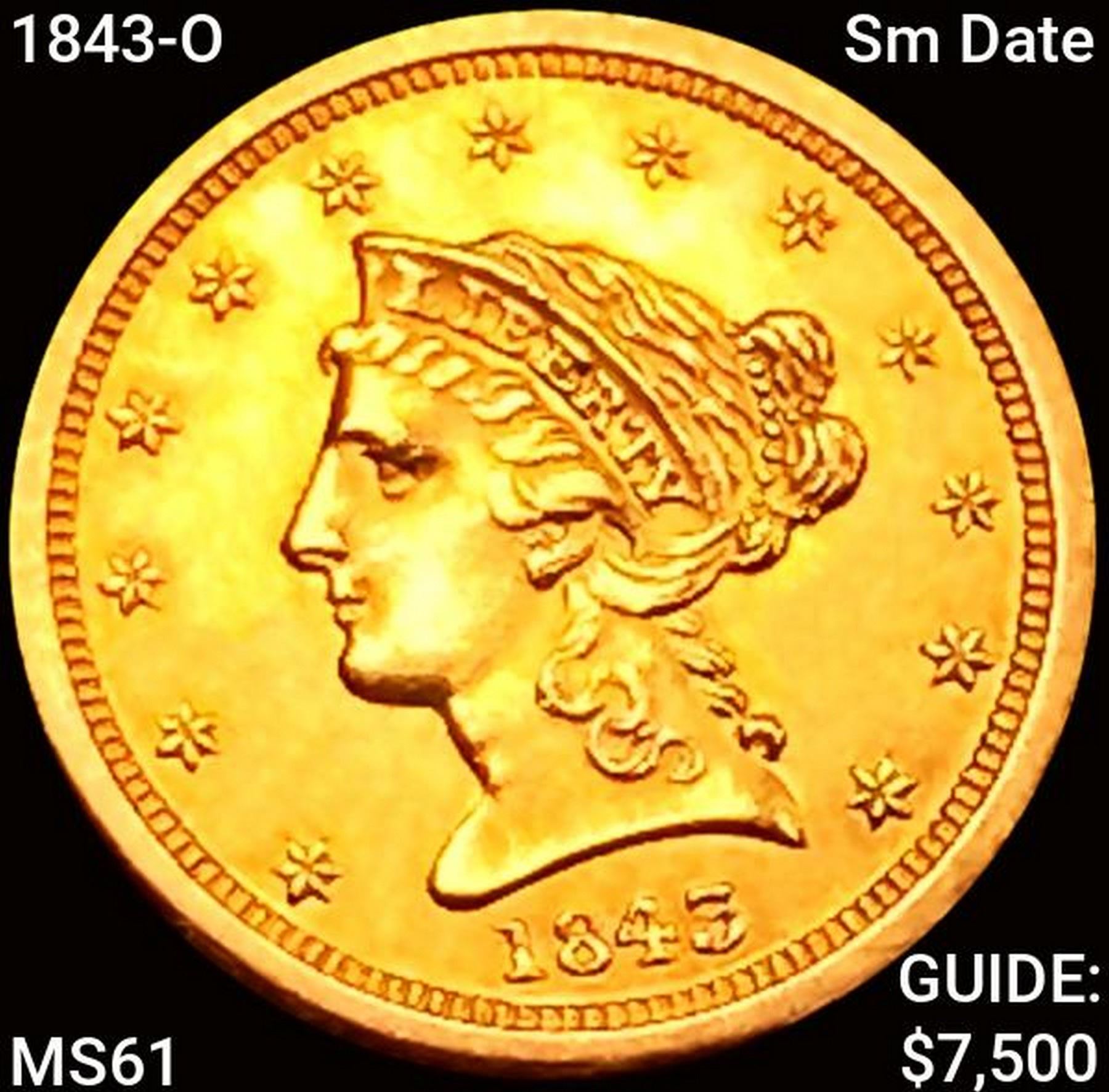1843-O Sm Date $2.50 Gold Quarter Eagle UNCIRCULATED