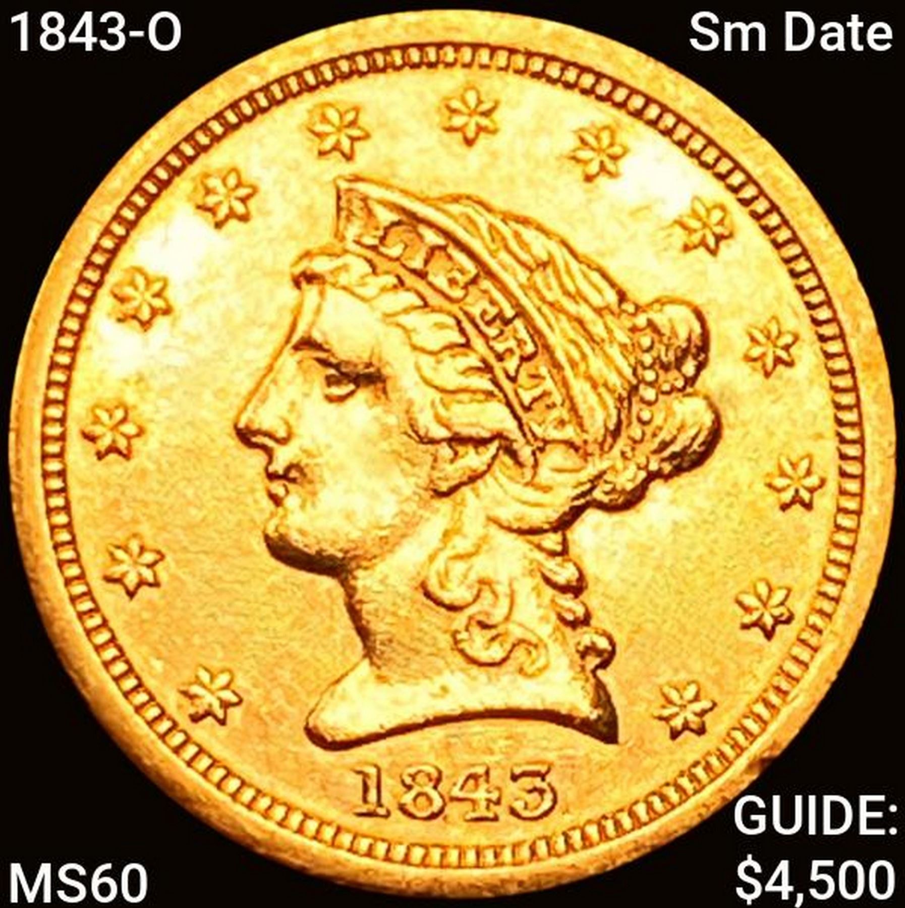 1843-O Sm Date $2.50 Gold Quarter Eagle UNCIRCULAT