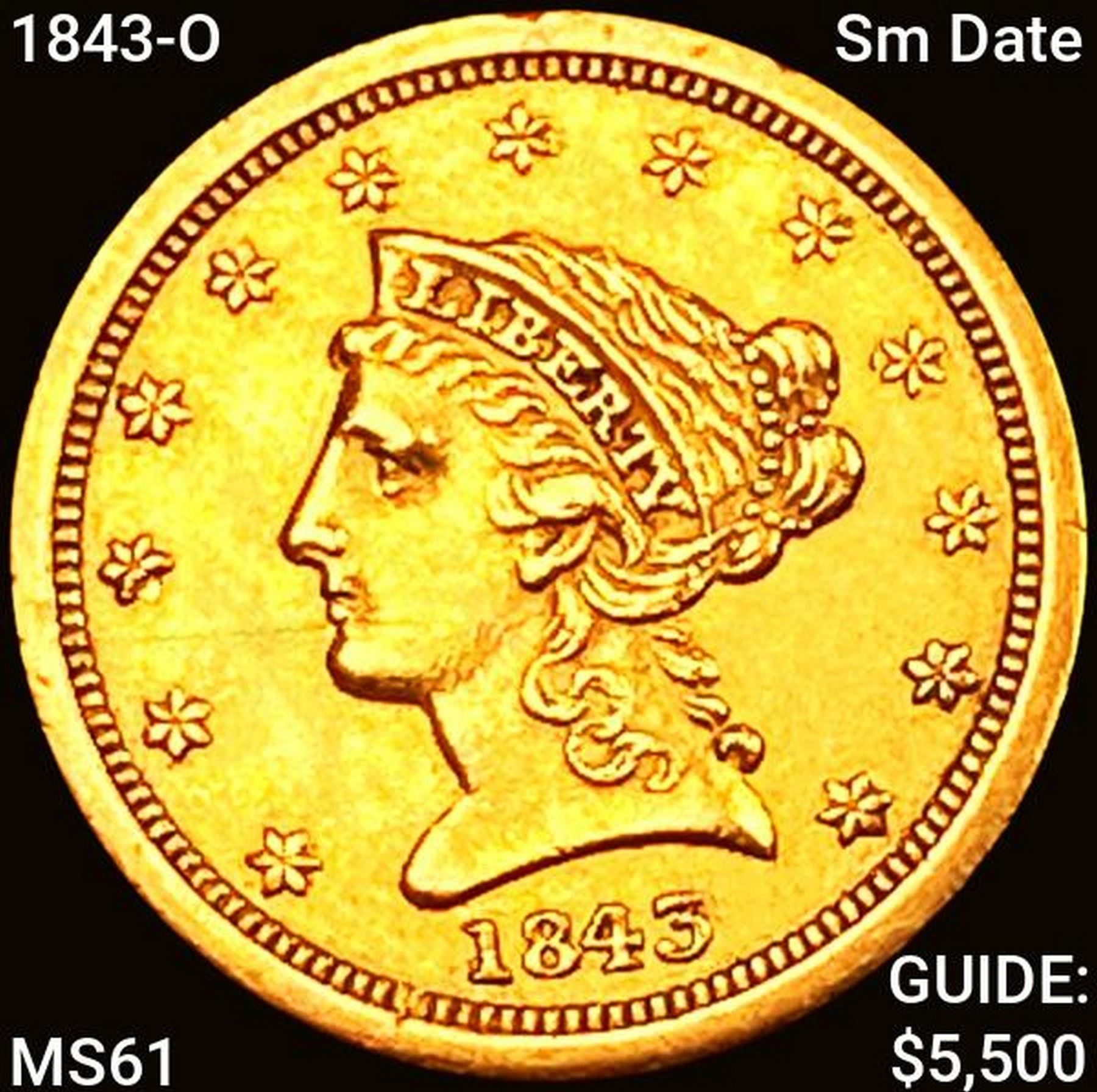 1843-O Sm Date $2.50 Gold Quarter Eagle UNCIRCULAT