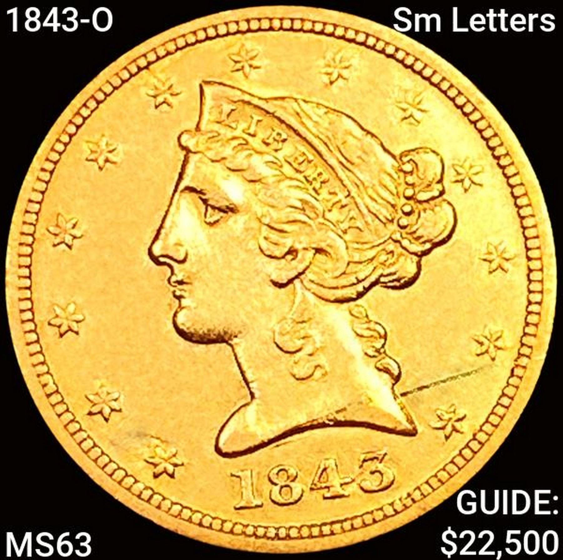 1843-O Sm Letters $5 Gold Half Eagle CHOICE BU