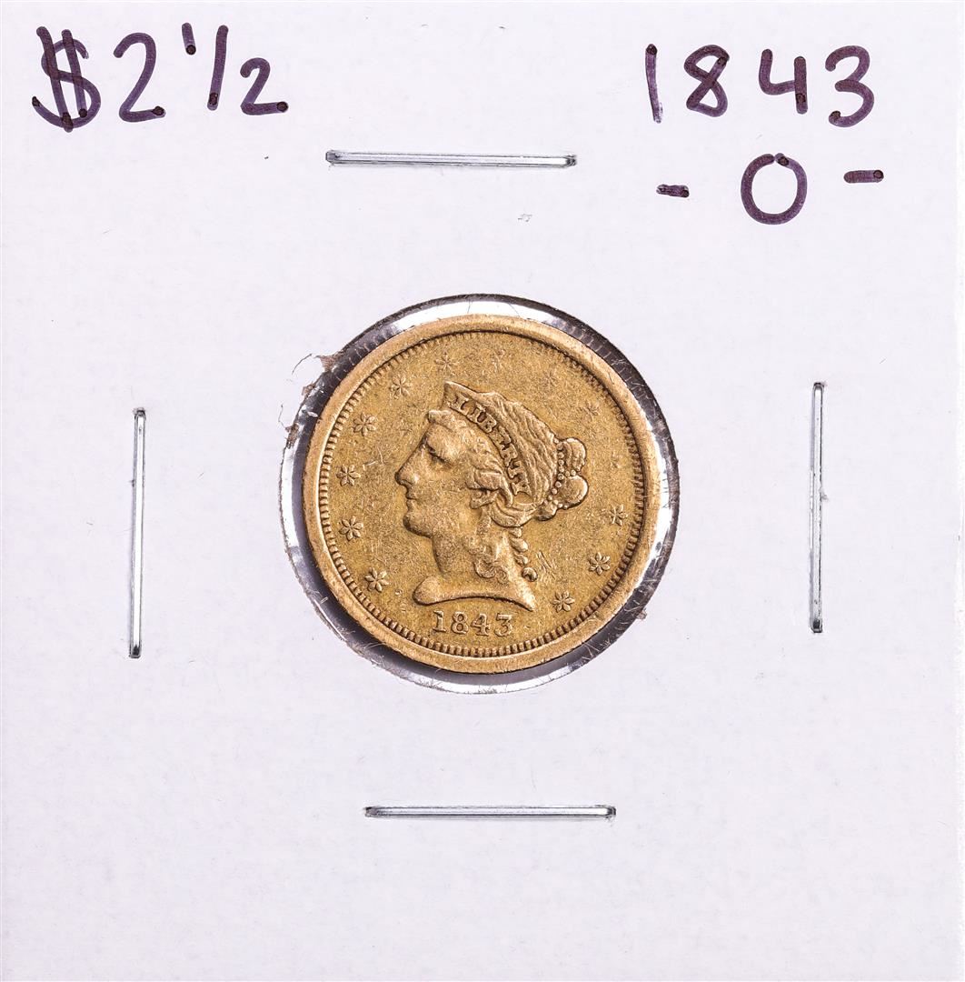 One 1843-O Small Date $2 1/2 Liberty Head Quarter Eagle Gold Coin.