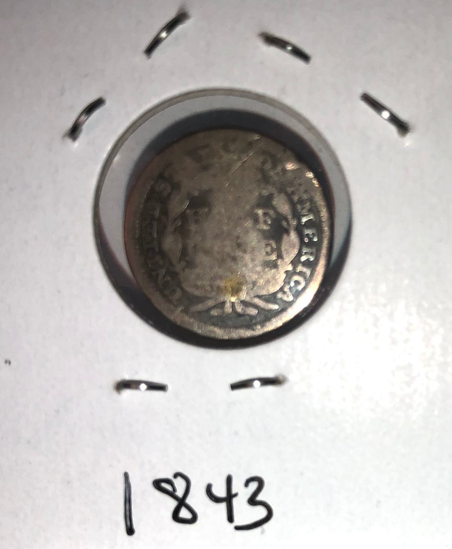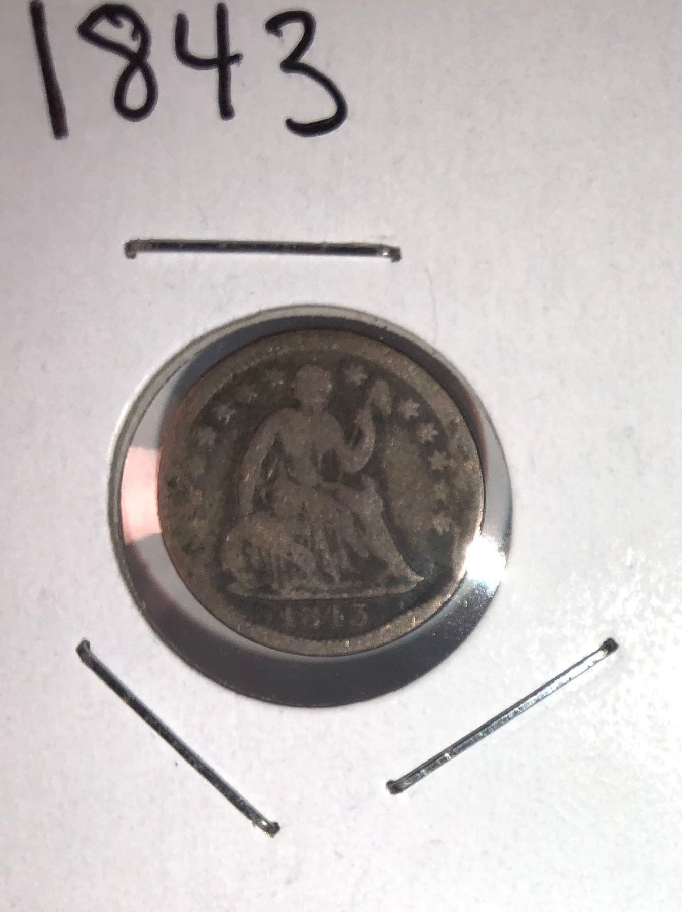 1843 SEATED LIBERTY HALF DIME 'BEND'
