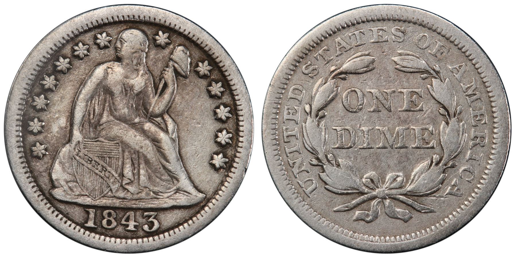 1843 Seated Liberty Dime PCGS VF-20 From The S.S...
