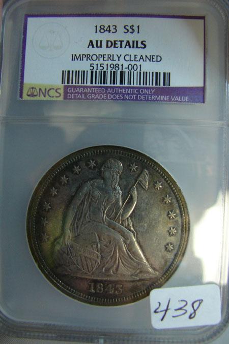 1843 Seated Liberty Dollar NGC AU Details Improperly Cleaned
