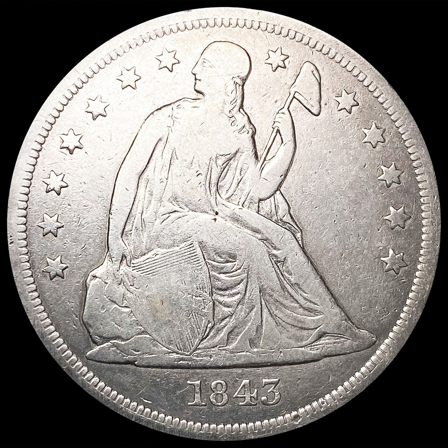 1843 Seated Liberty Dollar NICELY CIRCULATED