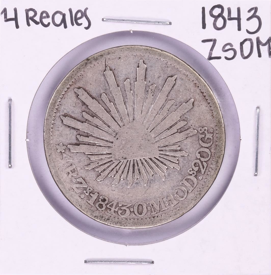 One 1843 ZsOM Mexico 4 Reales Silver Coin.