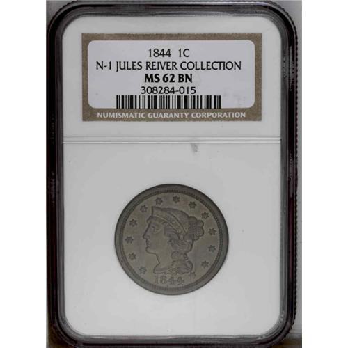 1844 1C N-1, R.1. MS62 Brown NGC. 1844[1C] N-1, R.1. MS62 Brown NGC. XF40 EAC.