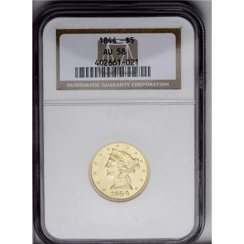1844 $5 AU58 NGC. The 1844 is considerably scarcer tha 1844[$5] AU58 NGC.
