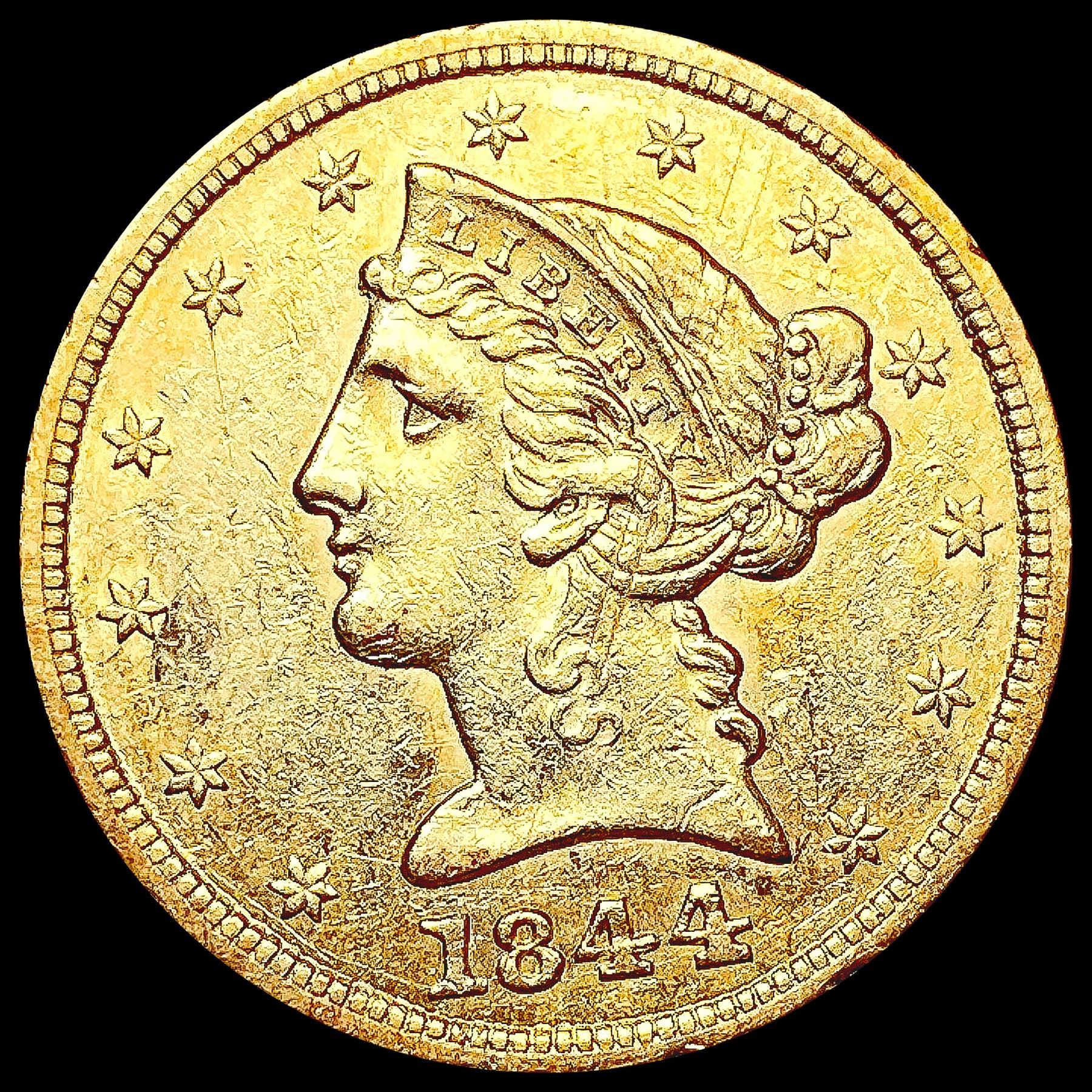 1844 $5 Gold Half Eagle CLOSELY UNCIRCULATED