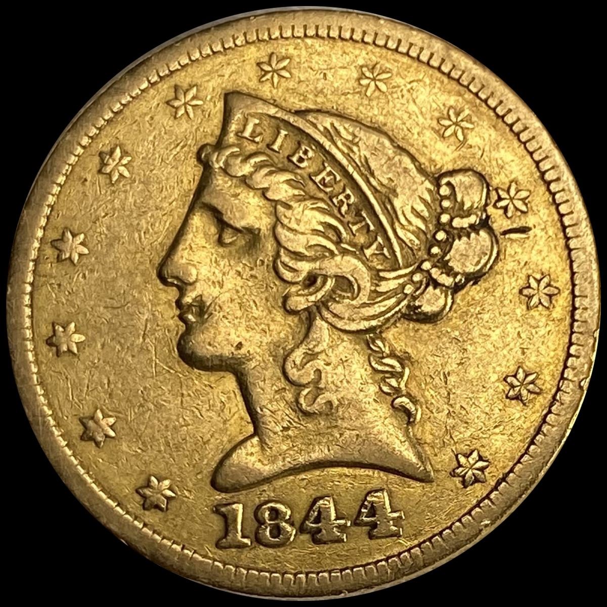 1844 $5 Gold Half Eagle NEARLY UNCIRCULATED