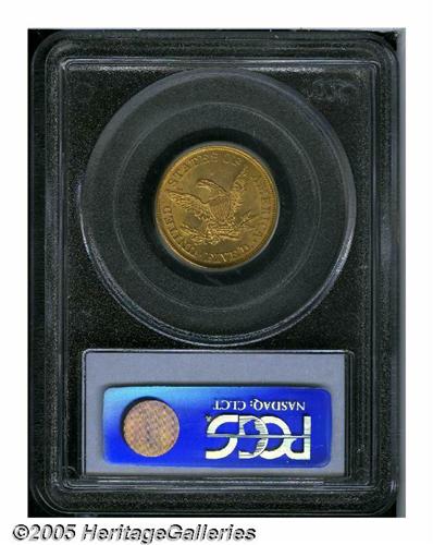 <B>1844<$5> MS62 PCGS.</B></I> Boldly detailed with a soft, frosted finish that downplays a hint of scuffiness in the obverse fields. Among so-called common 1840s issues, the 1844 Half Eagle is seen less frequently than either the 1843 or the 1847 in all levels of preservation and is surprisingly elusive in Mint State despite a respectable mintage of 340,330 pieces. Population: 13 in 62, 9 finer (5/05).
