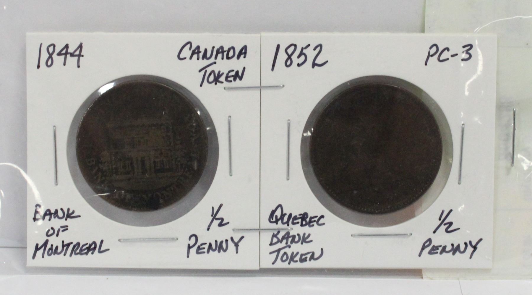 1844 AND 1852 CANADA 1/2 PENNY TOKENS