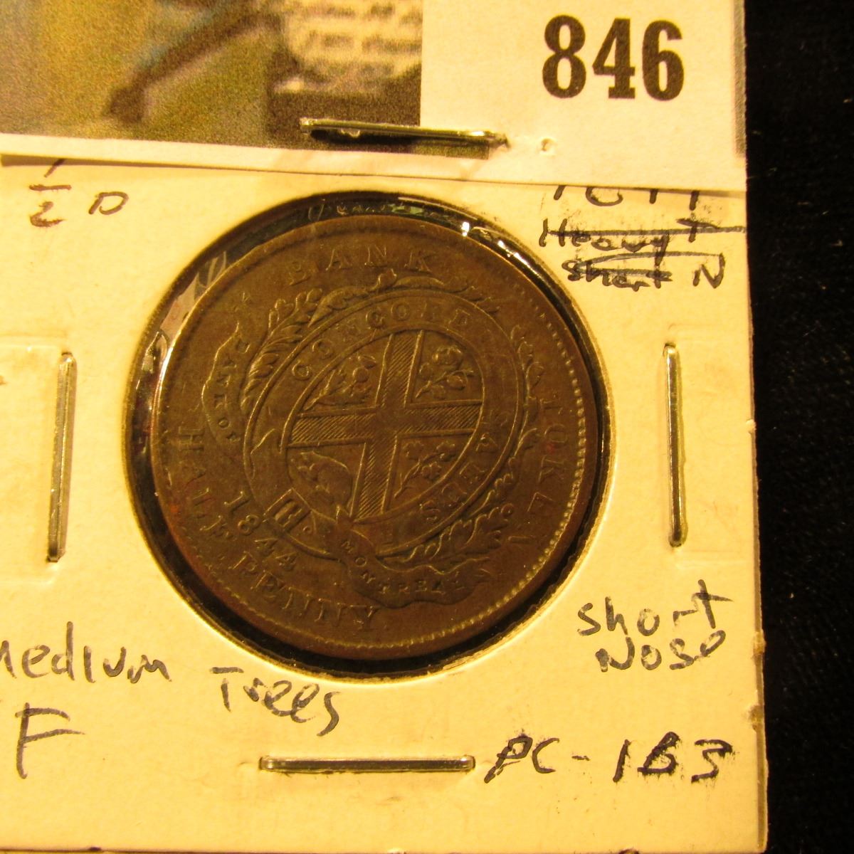 1844 Bank of Montreal Half Penny Token, Fine, Charlton PC-1B3.