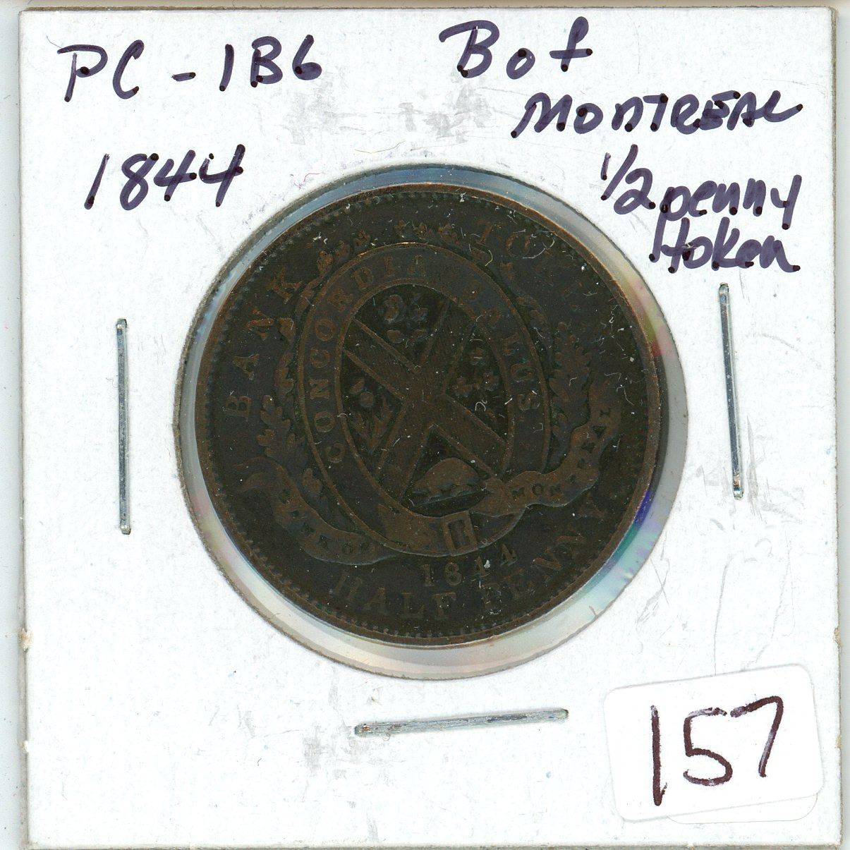 1844 Bank of Montreal Half Penny Token PC-1B6
