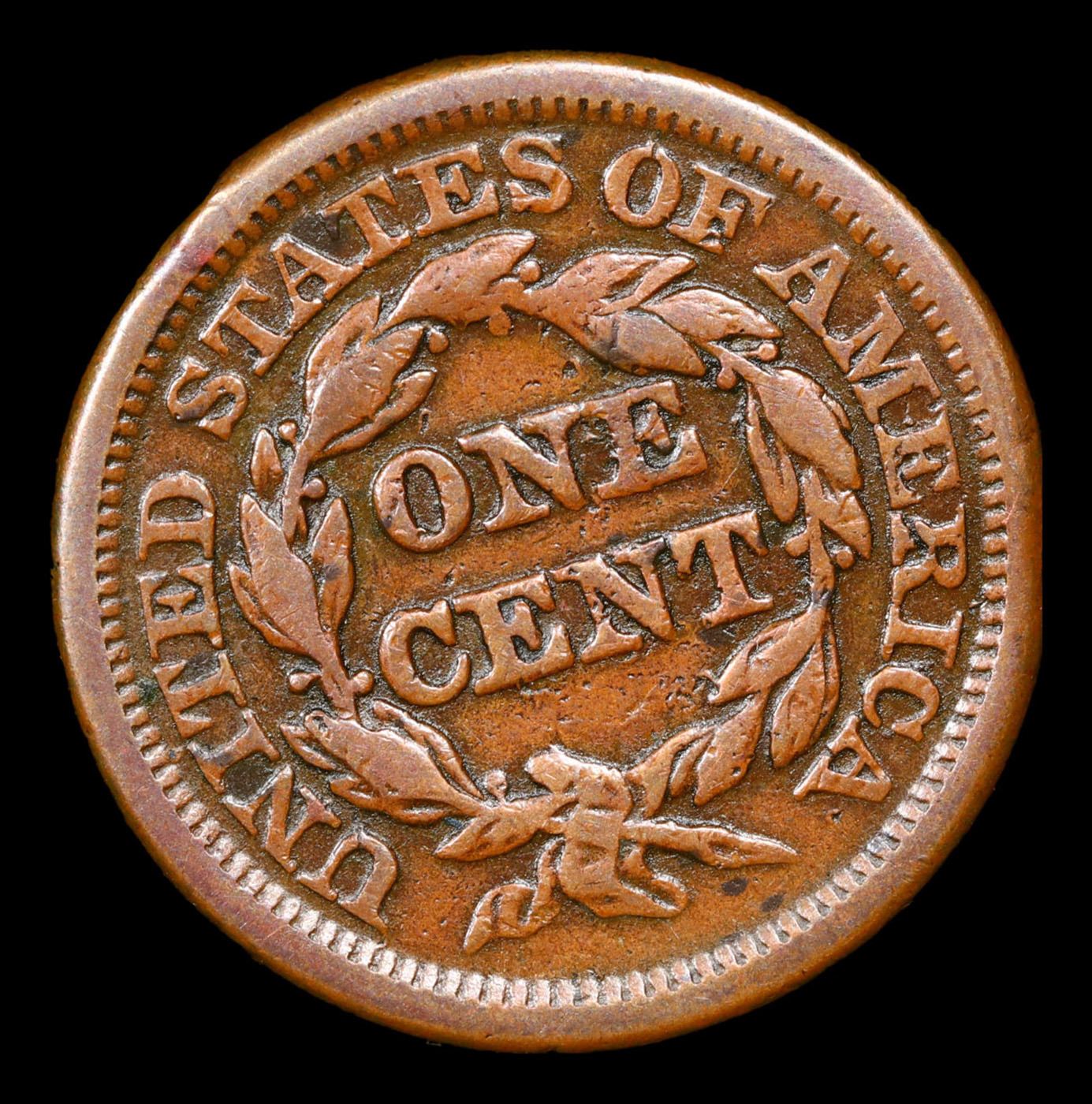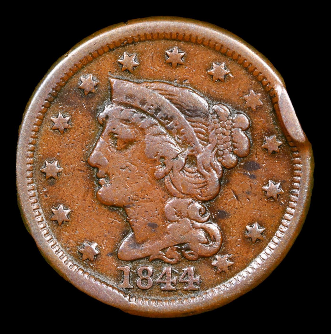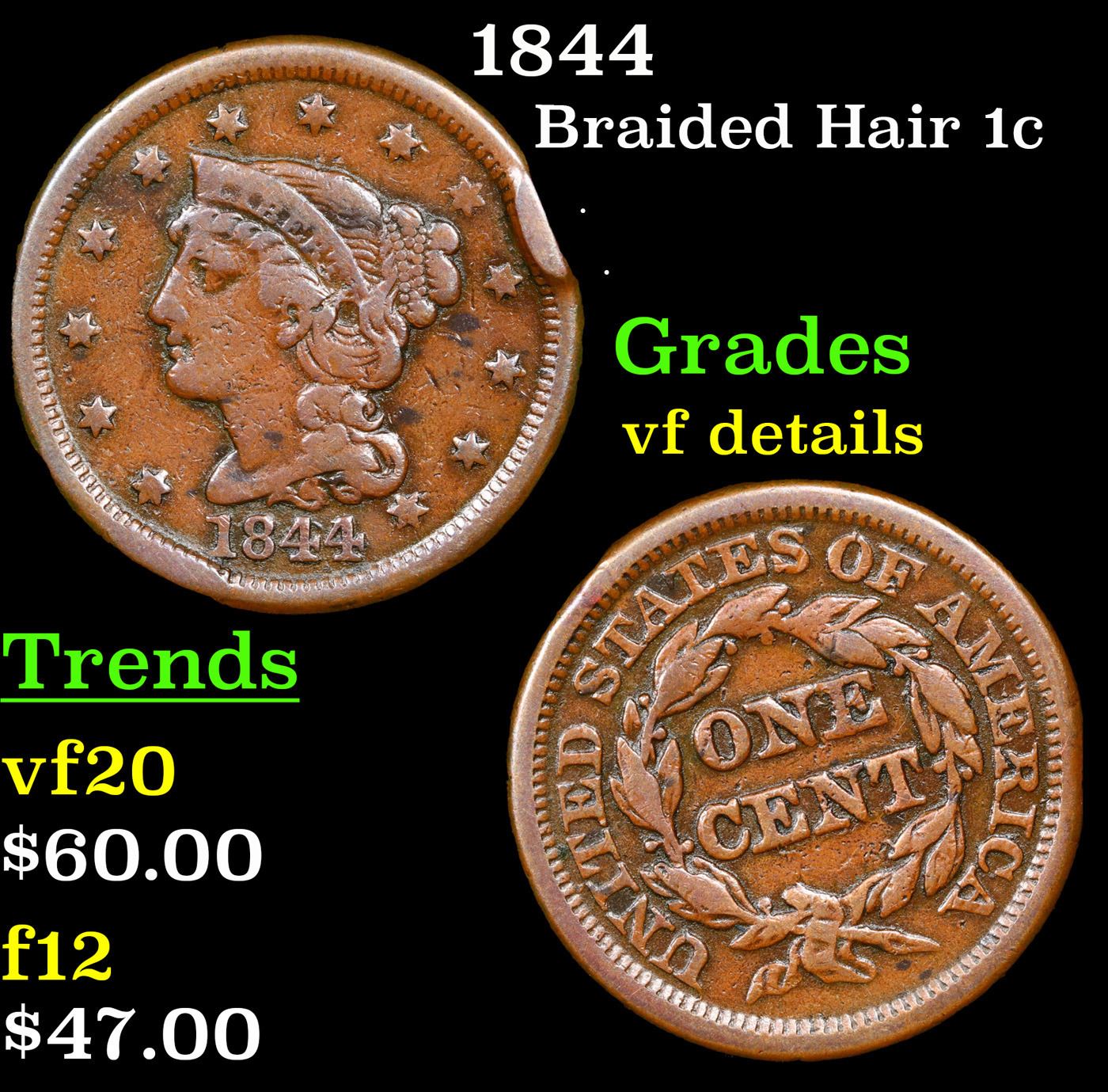 1844 Braided Hair Large Cent 1c Grades vf details.