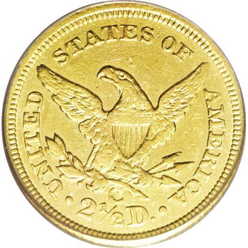 1844-C $2 1/2 AU53 PCGS. The strike is soft, and about