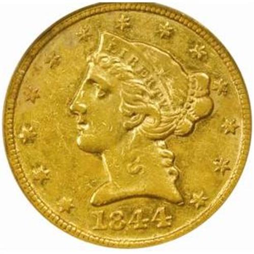 1844-C Liberty Half Eagle. Winter 7-D, the only known dies. Die State II. AU-50 (PCGS).