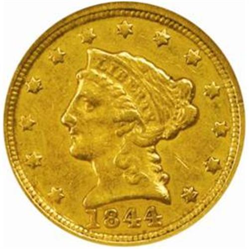 <style type="text/css"> body, td, th { font-family: Arial, Helvetica, sans-serif; font-size: 12px; color: #482424; margin: 0px; padding: 0px; } #header { background-image: url(http://www.bowersandmerena.com/ebay/images/template_v3_01.gif); clear: both; background-color: #590303; border-top-width: 2px; border-top-style: solid; border-top-color: #B38C4F;}#header #header_wrapper { height: 75px; clear: both; width: 800px; margin-right: auto; margin-left: auto; background-image: url(http://www.bowersandmerena.com/ebay/images/template_v3_03.gif); background-repeat: no-repeat; background-position: right; color: #F3EDCC;}#header #header_wrapper #header_logo { float: left; height: 75px; width: 444px; background-image: url(http://www.bowersandmerena.com/ebay/images/template_v3_02.gif); background-repeat: no-repeat; font-size: 10px; text-transform: capitalize; color: #B38C4F;}#header #header_wrapper #header_right { float: left; height: 75px; width: 356px; text-align: right;}#header #header_wrapper #header_right #headerLoginBtn { margin-bottom: 30px;}#header #header_wrapper #header_right input#txtSearch { color: #B49056; border: 1px solid #B49056; width: 175px; padding-top: 3px; padding-right: 3px; padding-bottom: 4px; padding-left: 3px;}#nav { height: 37px; background-image: url(http://www.bowersandmerena.com/ebay/images/template_v3_05.gif); clear: both;}#nav #nav_wrapper { height: 35px; width: 800px; margin-right: auto; margin-left: auto; border-left-width: 1px; border-left-style: solid; border-left-color: #B38C4F;}#nav #nav_wrapper a { padding-right: 15px; padding-left: 15px; border-right-width: 1px; border-right-style: solid; border-right-color: #B38C4F; height: 25px; padding-top: 10px; display: block; float: left; text-decoration: none; font-weight: bold; color: #5D0303;}#nav #nav_wrapper a:hover { color: #B38C4F;}#nav #nav_wrapper #search { float: right; padding-top: 7px;}#nav #nav_wrapper #search #txtSearch { font-family: Arial, Helvetica, sans-serif; font-size: 10px; text-transform: uppercase; color: #D2AE75; border: 1px solid #B38C4F; padding: 3px;}#content_bgd { background-image: url(http://www.bowersandmerena.com/ebay/images/template_v3_09.gif); background-repeat: repeat-y; background-position: center; padding-top: 15px; padding-bottom: 15px; background-color: #FBFBDB;}#content_wrapper { clear: both; height: auto; width: 800px; margin-right: auto; margin-left: auto;}.LotDetailWhite{ line-height:normal; font-size:13px; font-family: arial,helvetica,sans-serif; color: White; font-weight: bold;}.LotDetailInformation{ line-height:normal; font-size: 13px; font-family: arial,helvetica,sans-serif;}.LotDetailMessage{ line-height:normal; font-size: 13px; font-family: arial,helvetica,sans-serif; color: red;}}tr.HeaderAuctionTitle td { color: #000000; font-weight: bold; padding: 2px; background-image: url(http://www.bowersandmerena.com/ebay/images/template_v3_05.gif); background-repeat: repeat-x; border-bottom-width: 1px; border-bottom-style: solid; border-bottom-color: #B38C4F;}table.AuctionSummary a, table.AuctionSummary a:link, table.AuctionSummary a:visited { color: #0000FF; text-decoration: none;}}td.tableHeaderLeft { border-left-width: 1px; border-left-style: solid; border-left-color: #B38C4F;}td.tableHeaderRight { border-right-width: 1px; border-right-style: solid; border-right-color: #B38C4F;}td.tableCellMiddle { border-left-width: 1px; border-left-style: solid; border-left-color: #B38C4F; border-right-width: 1px; border-right-style: solid; border-right-color: #B38C4F; padding: 5px;}tr.footer td { border-top-width: 1px; border-top-style: solid; border-top-color: #B38C4F;}</style></head><body><div id="header"> <div id="header_wrapper"> <div id="header_logo"> </div> <div id="header_right"> </div> </div></div><div id="nav"> <div id="nav_wrapper"> <a href="http://www.bowersandmerena.com">Our eBayLive Auctions</a> <a href="#PaymentInfo">Payment Information</a> <a href="#ShippingInfo">Shipping Information</a> <a href="#About">About Bowers and Merena</a> </div></div><div id="content_bgd"> <div id="content_wrapper"> <table width="100%" border="0" cellpadding="5" cellspacing="0" class="AuctionSummary"> <tbody> <tr class="HeaderAuctionTitle" style="height: 25px;"> <td align="left" class="tableHeaderLeft" > </td> <td align="center" class="tableHeaderRight"> <span style="font-size: large;">Lot #1035. 1844-C Liberty Quarter Eagle. Winter 6-E, the only known dies. AU-50 (NGC).</span> </td> </tr> <tr> <td colspan="3" class="tableCellMiddle"> Much scarcer than even an original mintage of 11,662 pieces might imply, the 1844-C suffered heavily in circulation due to a lack of an 1845-dated Quarter Eagle delivery from the Charlotte Mint. This AU survivor exhibits even khaki-gold color to both sides, the surfaces of which are a tad scuffy from commercial use. There are no individually mentionable abrasions, however, and wear is overall light. Softness to the detail both on the obverse and the reverse, therefore, is largely a result of the poor striking quality for which the issue is known. The 1844-C is similar in absolute rarity to the 1838-C Classic, 1854-C and 1856-C and rarer than such other Quarter Eagles as the 1840-C, 1851-C and 1860-C.