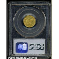 <B>1844-D<$2 1/2> MS62 PCGS.</B></I> Variety 5-H. As on many of examples of the conditionally challenging 1844-D, one of a mere 17,332 pieces struck, this piece shows noticeable weakness of strike at the centers. That deficiency aside, the pleasing green-gold surfaces display more than adequate luster and only modest scuffiness in the fields. Although certification figures list seven representatives in higher Mint State grades (including 5 at NGC), we feel reasonably certain that resubmissions cause this number to be somewhat inflated and that the present examples qualifies at the low end of Condition Census. Population: 10 in 62, 2 finer (3/04). <BR><BR><B>Important notice:</B> Heritage usually auctions material at the rate of 200-250 lots per hour. On some occasions eBay Live bid software or the Internet may not be able to keep up with the pace of the auction. We recommend placing a realistic absentee bid now as insurance to avoid disappointment. Occasionally the auctioneer may eliminate or reject an eBay Live bid, and the auctioneer may also reopen a lot after the close of the eBay live bidding (usually because we missed an audience bid), and may reject your bid even if it shows you as the winning bidder. By bidding via eBay Live, you agree that Heritage may award the lot to another bidder at its sole discretion under the circumstances described above or any other reasonable circumstances. Since eBay bids are not shown to us until we open the lot on the floor, we treat those bids just like floor bids. In most cases the floor responds before the eBay bid is presented to us, due to Internet lag time, so for consistency we have made it a policy that floor bids are always considered first over tie eBay live bids. Also please note that all Heritage lots purchased through eBay Live carry a 20% Buyer's Premium. Please make sure you read the Terms and Conditions before you bid.