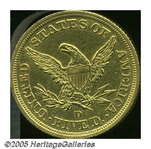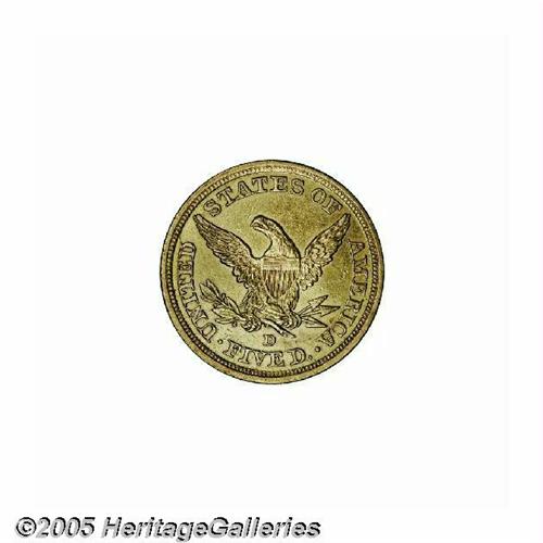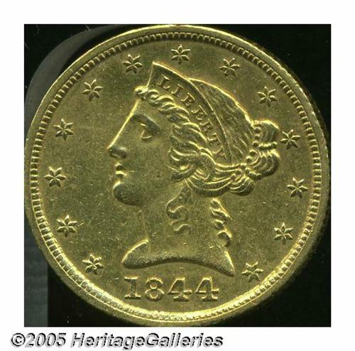 1844-D $5 AU58 Cleaned, Uncertified. Not the usua