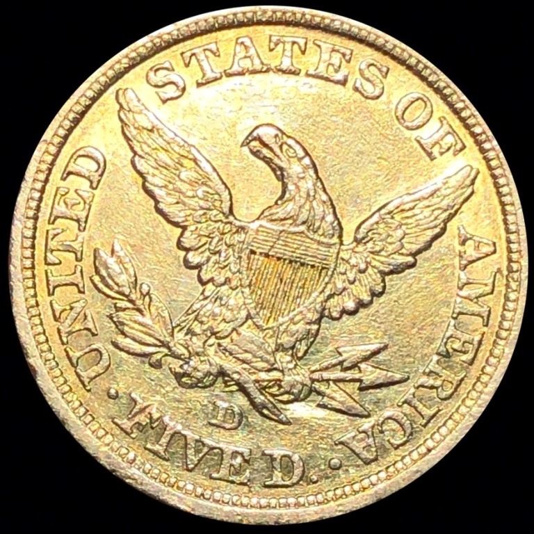 1844-D $5 Gold Half Eagle CLOSELY UNCIRCULATED