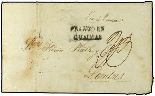 1844 GAAIMAS a LONDRES. Marca FRANCO EN/GUAIMAS indicando el pago del porte local, tasada a la llega