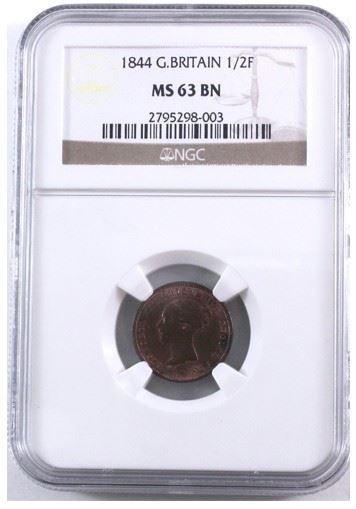 1844 Great Britain 1/2 farthing NGC MS63 BN.